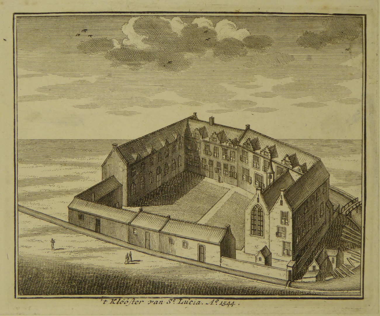 Amsterdam, afbeelding van St. Lucia-klooster anno 1544, Burger-meisjes weeshuis