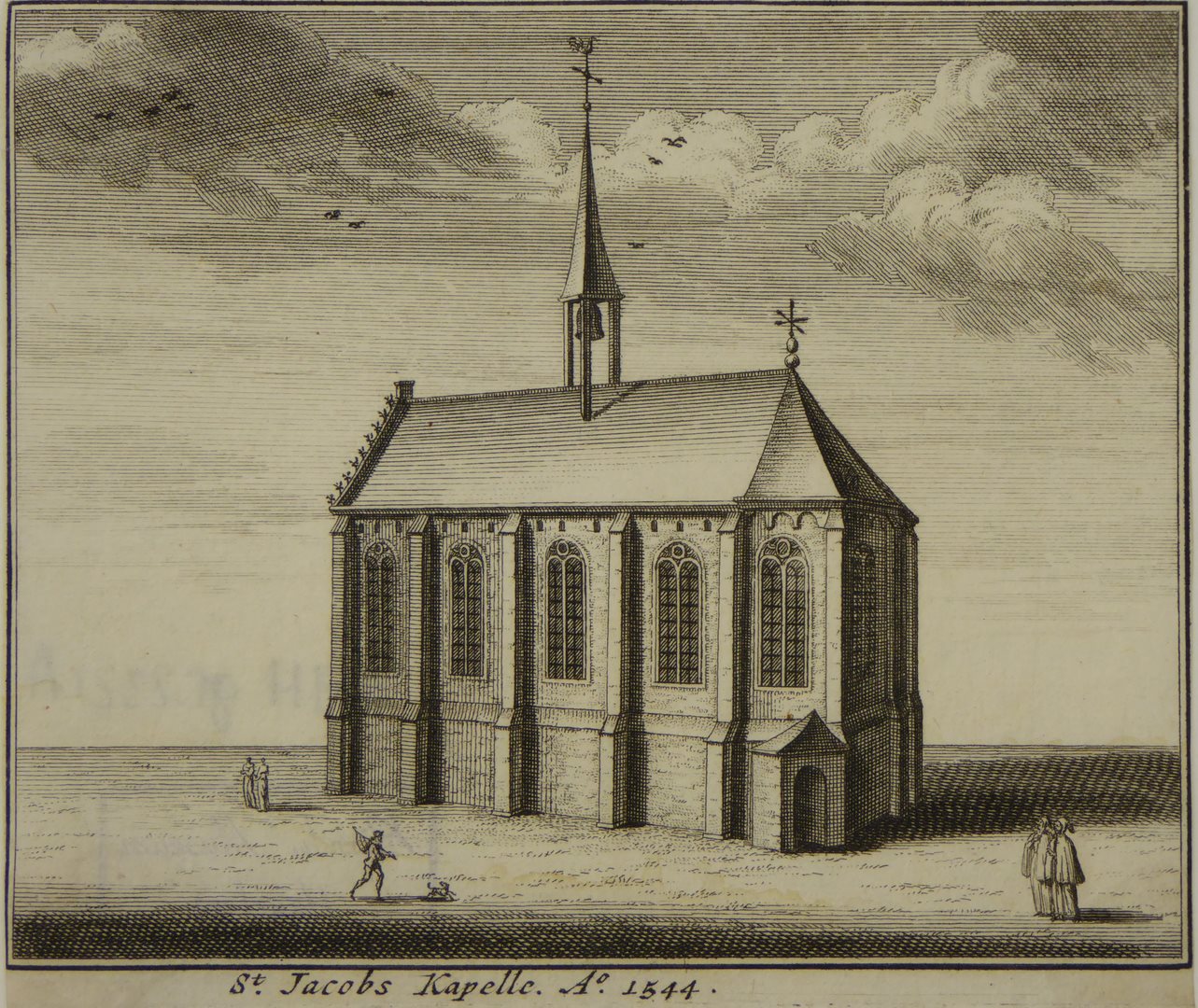 Amsterdam, afbeelding van de St. Jacobs kapelle anno 1544