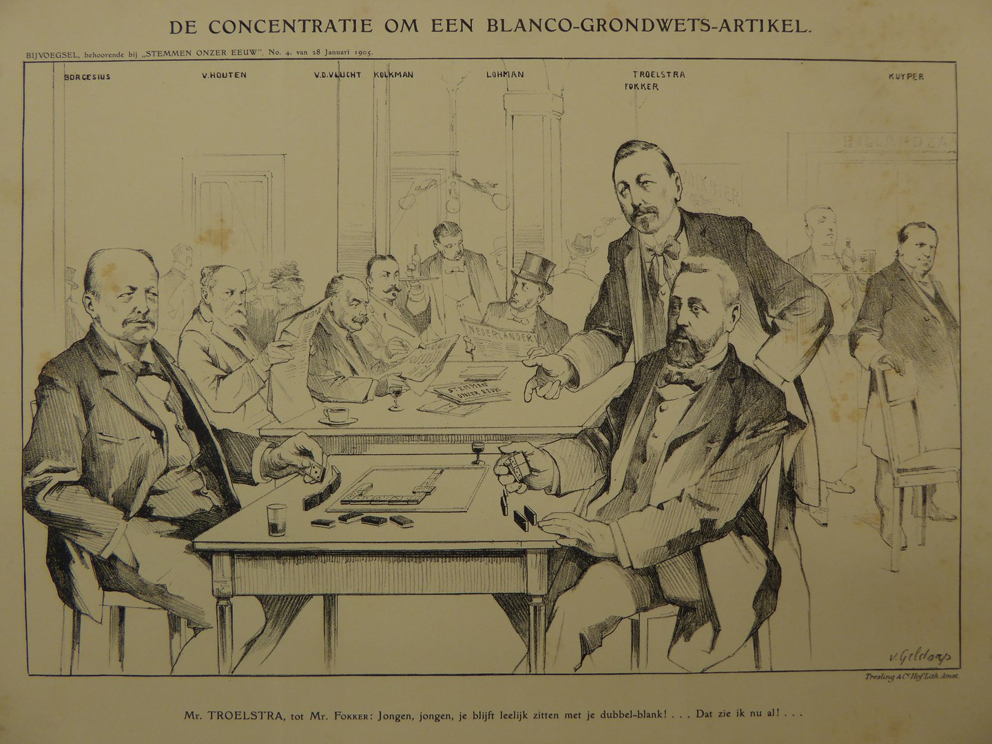 Concentratie om een blanco-grondwets-artikel, met onder meer Borgesius, Fokker, Troelstra
