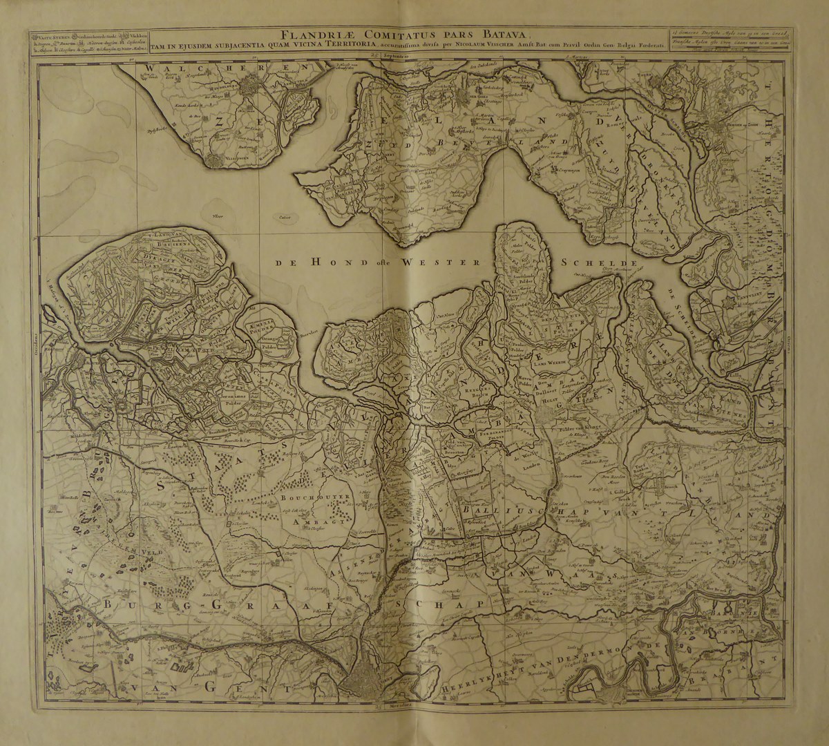 Kaart van graafschap Vlaanderen en Batava "Flandriae Comitatus pars Batava tam..."