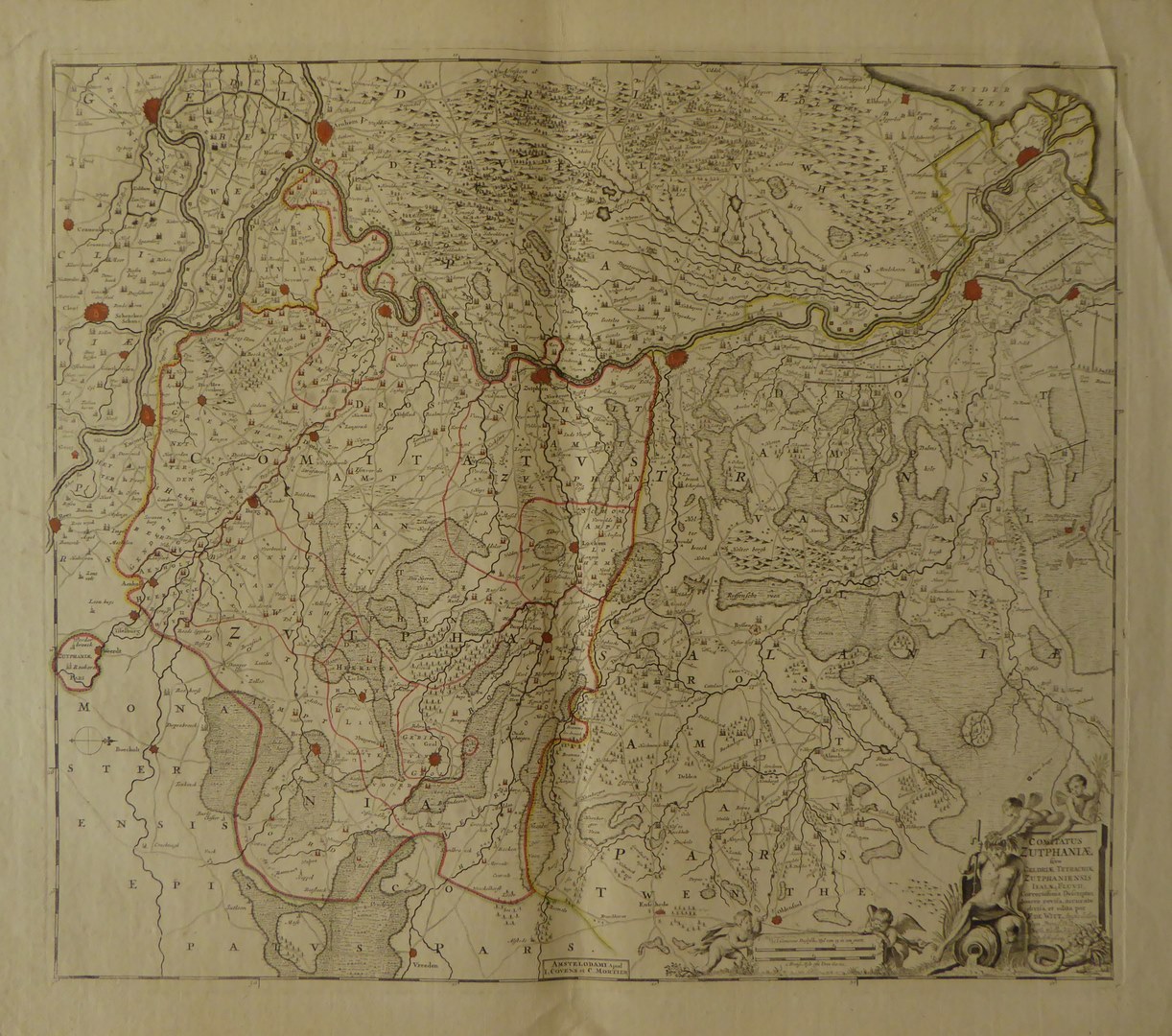 Kaart van graafschap Zutphen "Comitatus Zutphaniae sive Geldriae Tetrarchiae..."