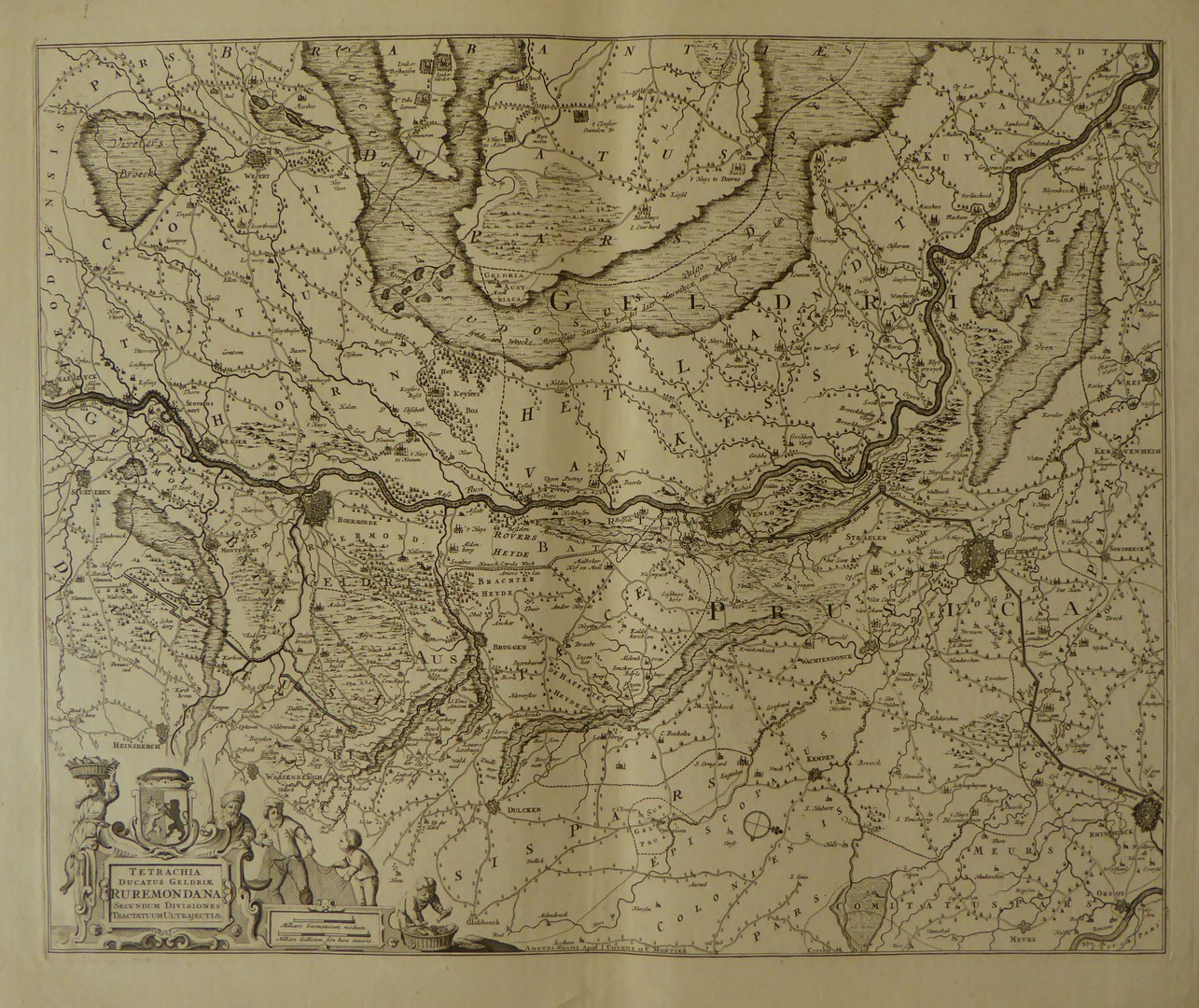 Kaart van hertogdom Gelre: Roermond en omgeving "Tetrachia ducatus Geldriae Ruremondana..."