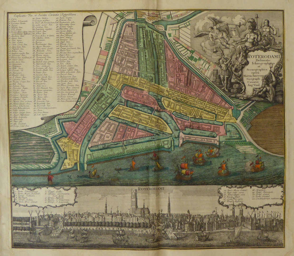Kaart van Rotterdam "Roterodaman delineatio...", ingekleurd