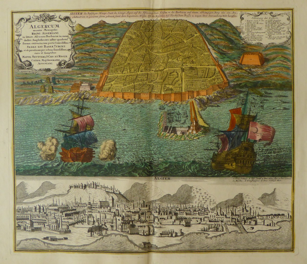 Kaart van Algiers "Algier die Befestigte Haupt Statt...", ingekleurd