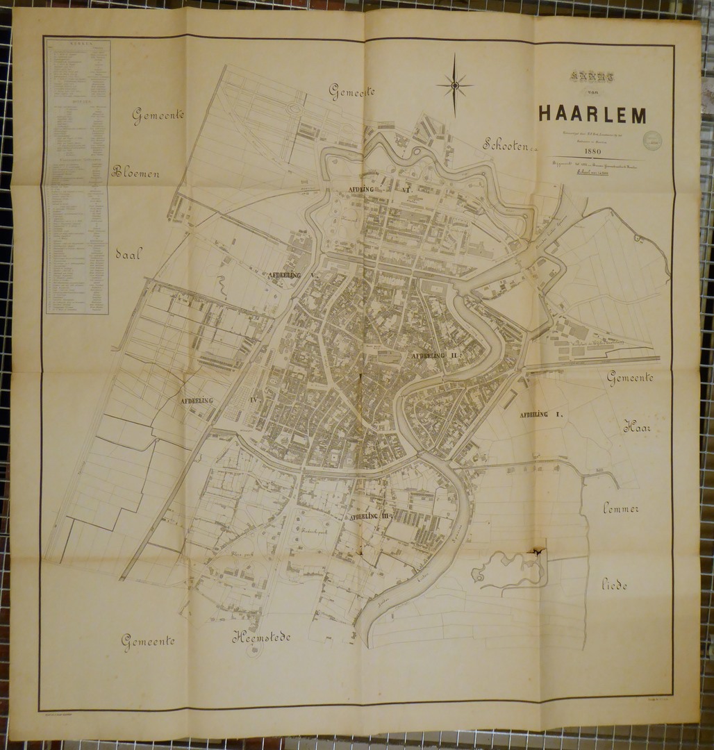 Kaart van Haarlem, bijgewerkt tot 1882 door het Bureau voor gemeentewerken der gemeente Haarlem