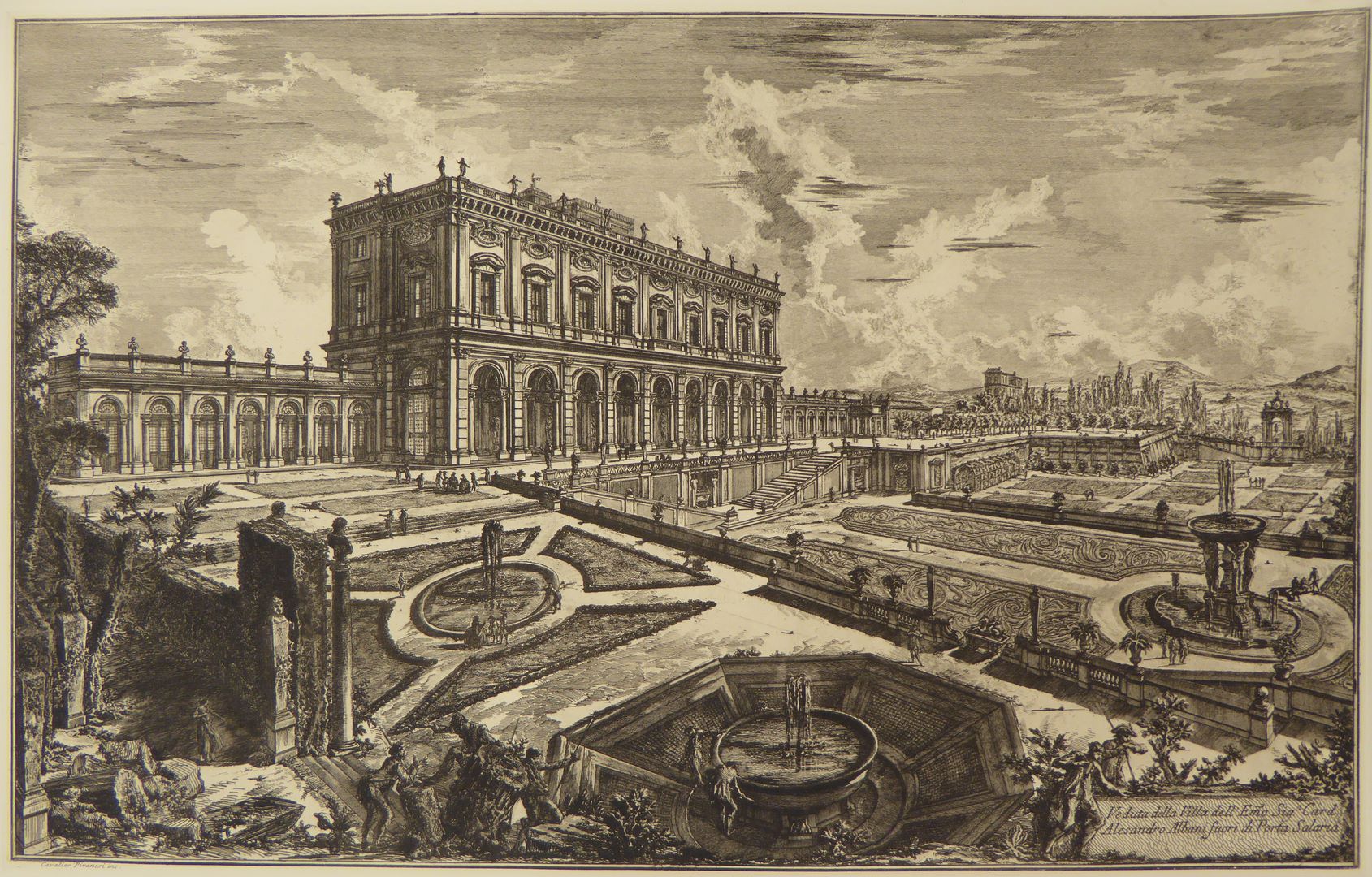 Rome, gezicht op de villa van Alesandro Albani buiten de poort van Salaria, late afdruk