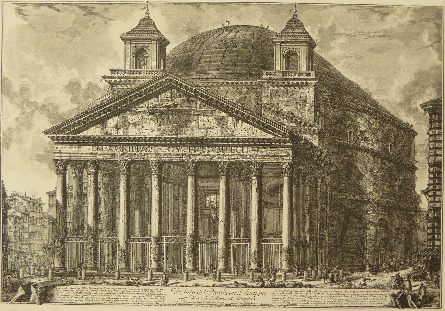 Rome, gezicht op het pantheon van Agrippa, late afdruk van oude koperplaat