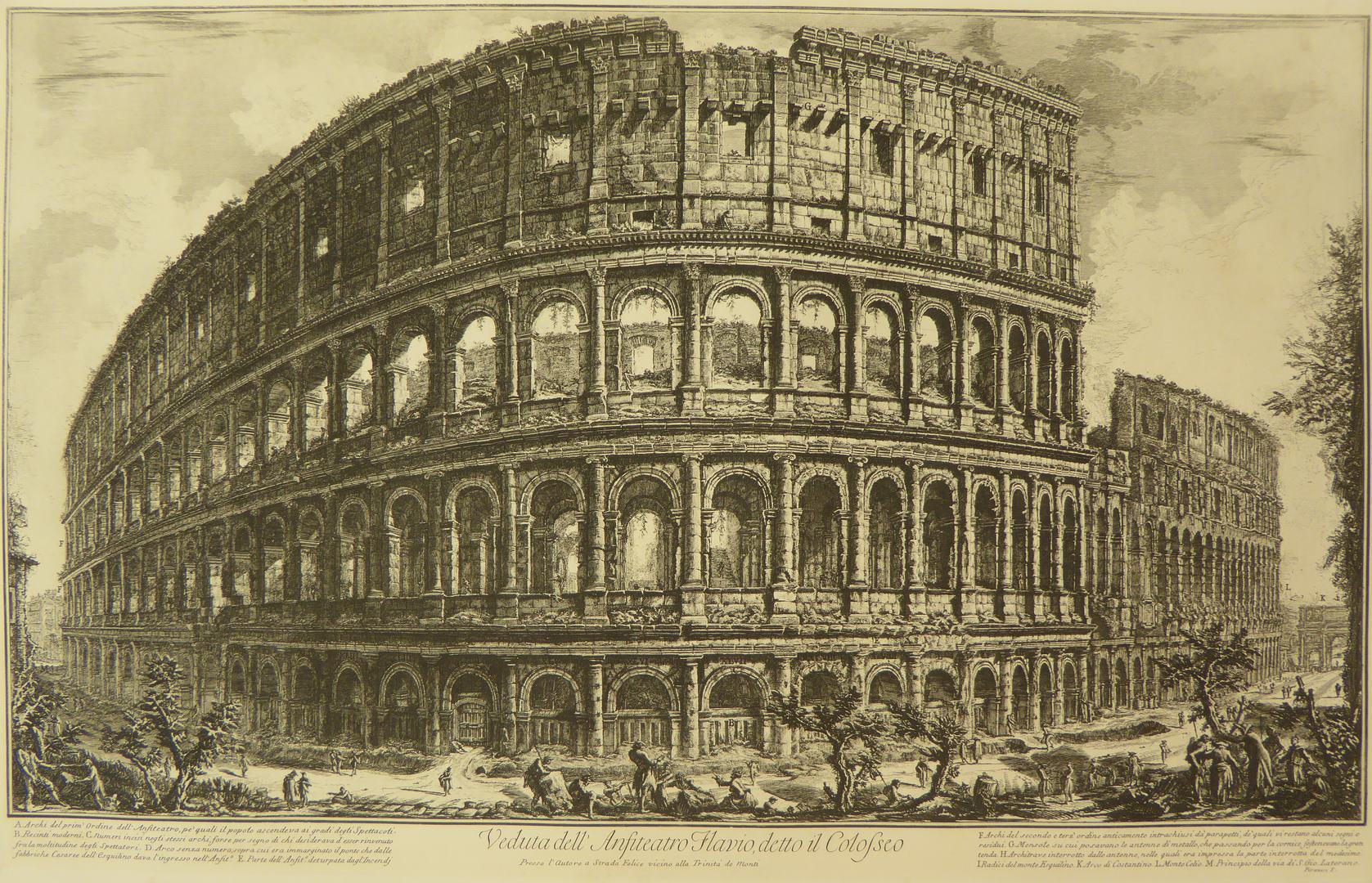 Rome, gezicht op het Collosseum, late afdruk van oude koperplaat