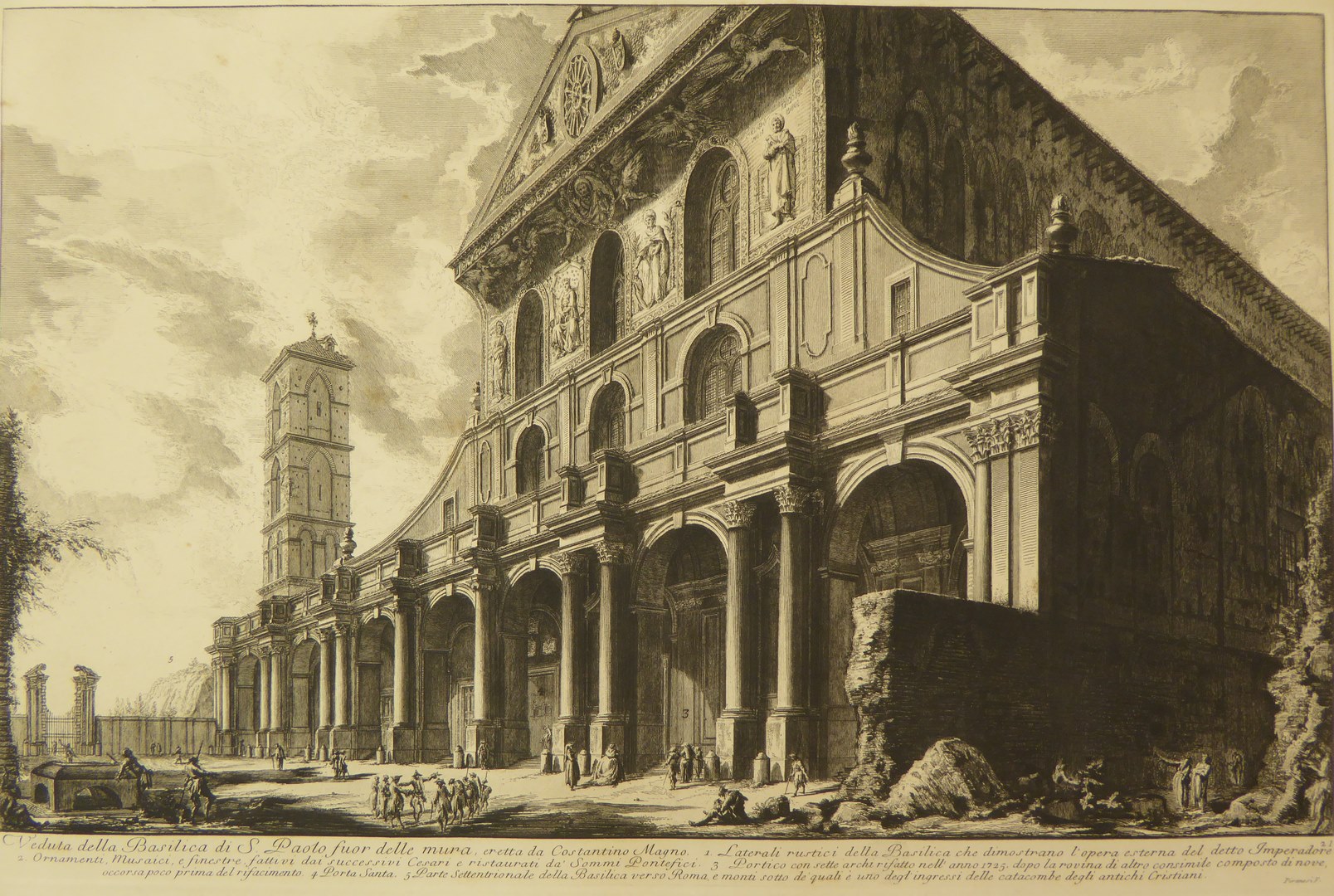 Rome, gezicht op de St. Paulus buiten de muren, late afdruk van oude koperplaat