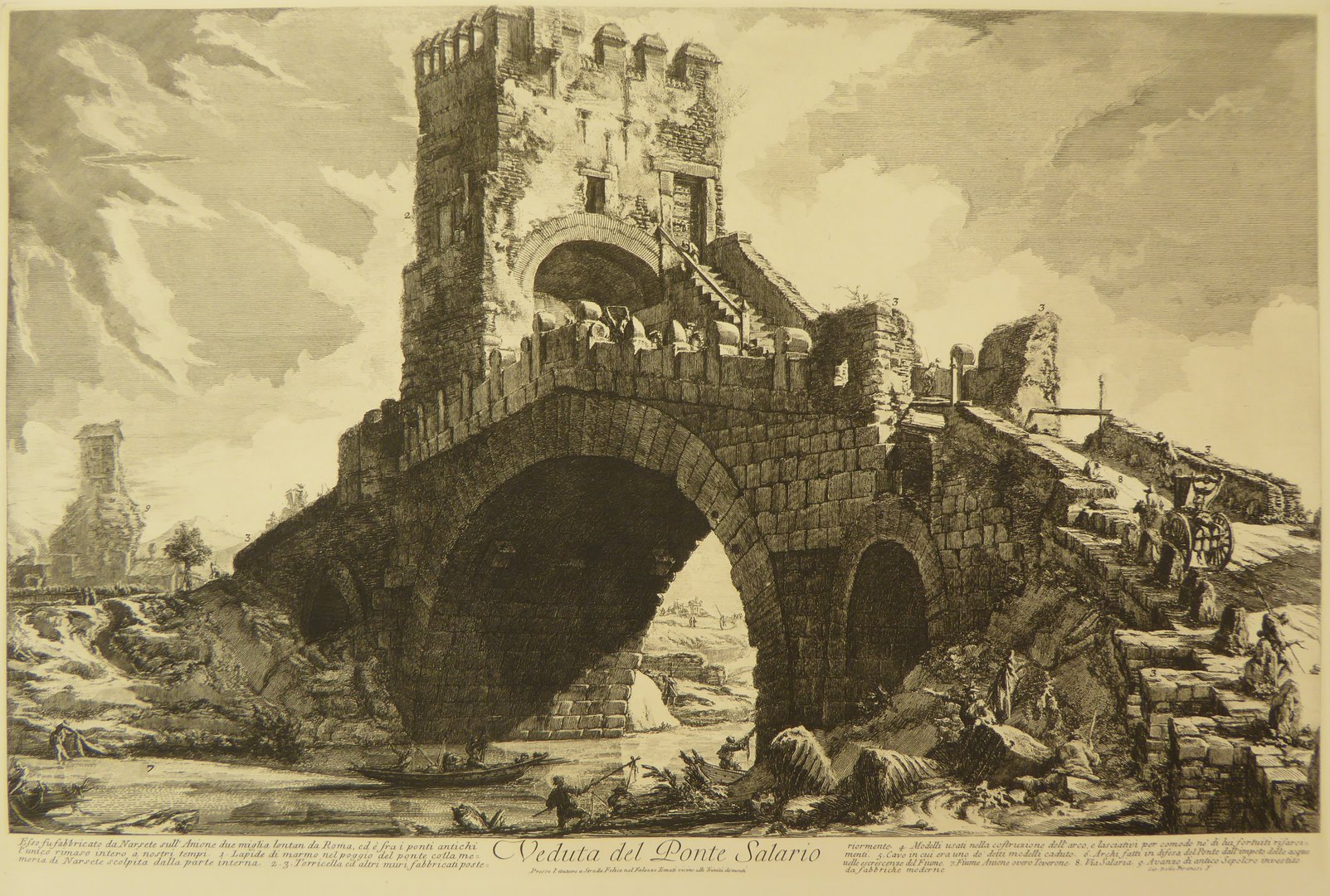 Rome, gezicht op de Ponte Salario, late afdruk van oude koperplaat