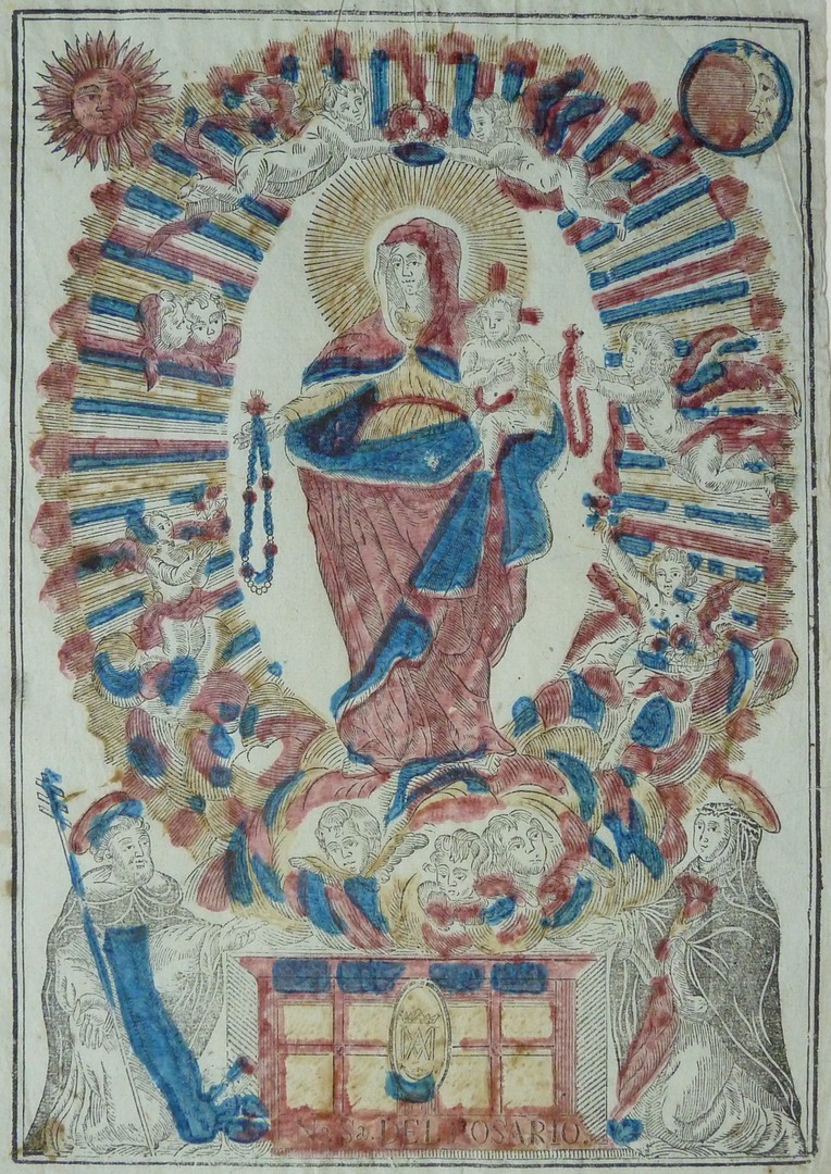 Spaanse en Portugese Mariavoorstellingen (serie): O.L. Vrouw del Rosario (Rozenkrans), ingekleurd