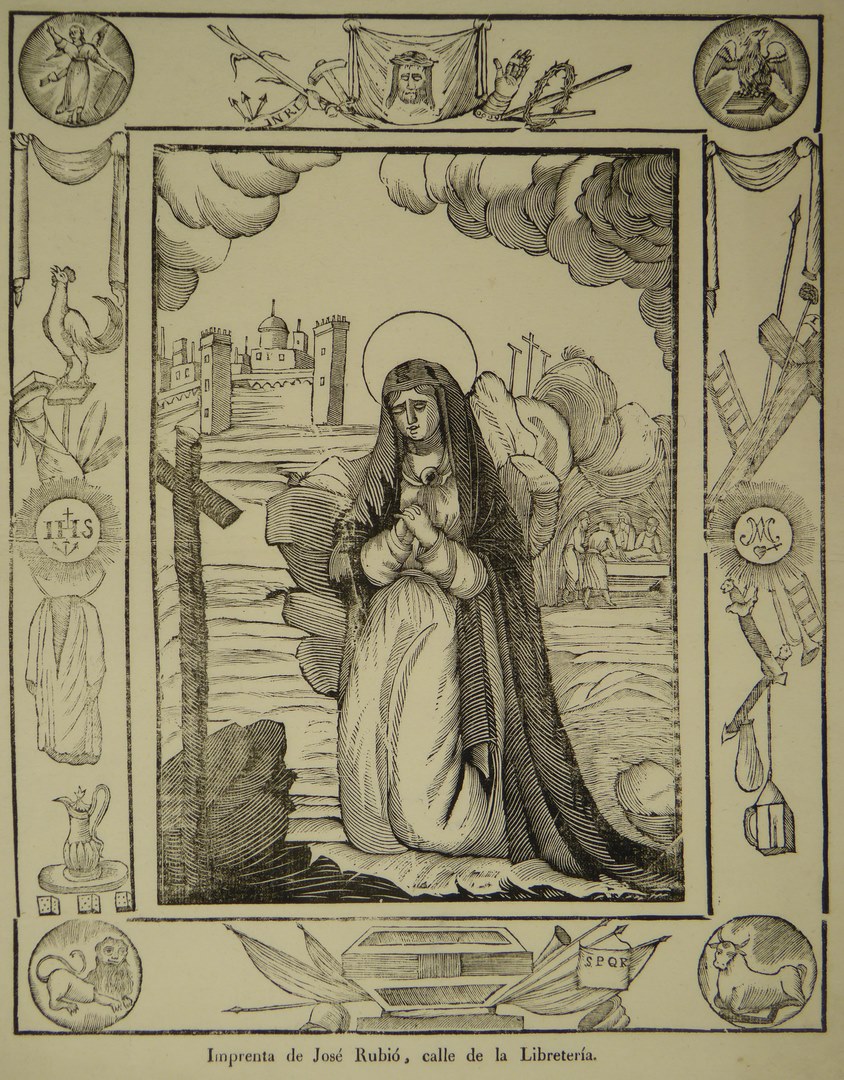 Spaanse en Portugese Mariavoorstellingen (serie): Maria biddend voor het graf van Christus
