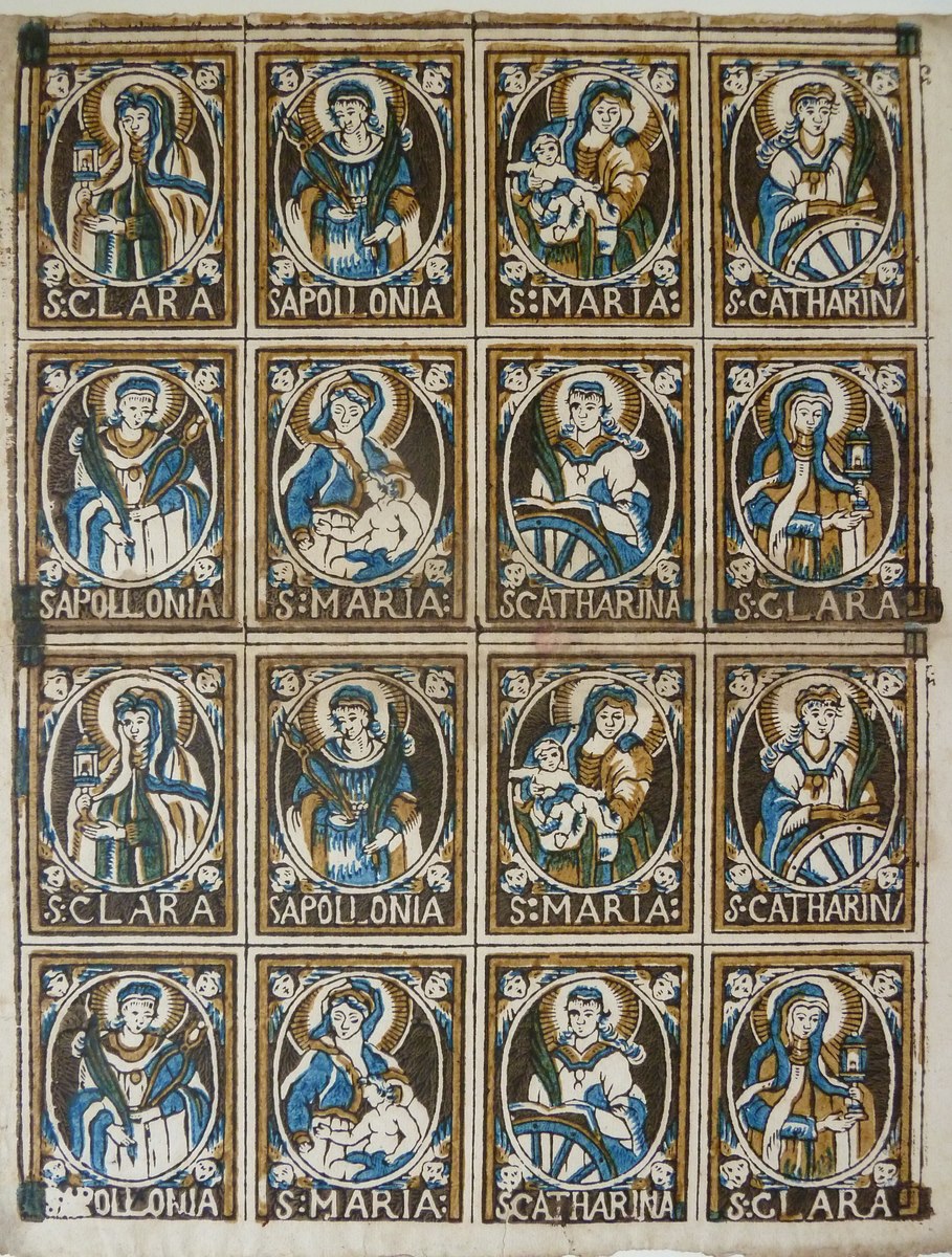 Clara, Apollonia, Maria, Catharina in verschillende gedaanten, meerkleurendruk
