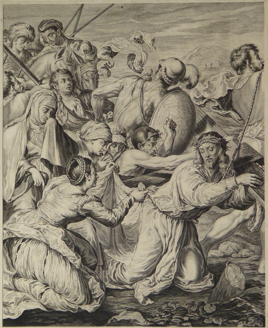 Christus valt onder het kruis met Veronica, druk voor de letter