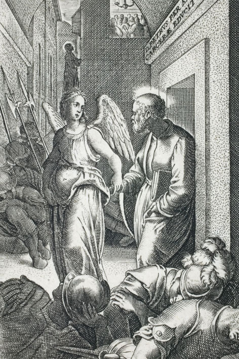 Petrus door een engel uit de kerker bevrijd