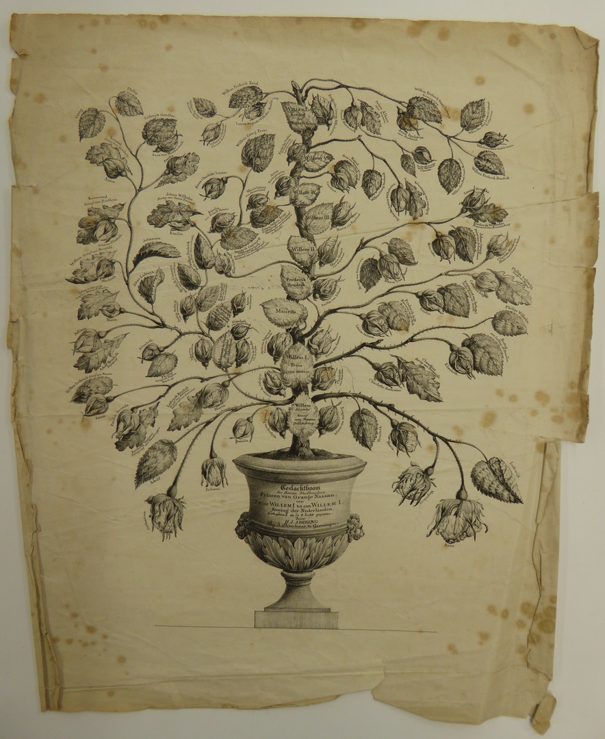 "Geslachtboom der Heeren Stadhouders princen van Oranje Nassau..." (stamboom)