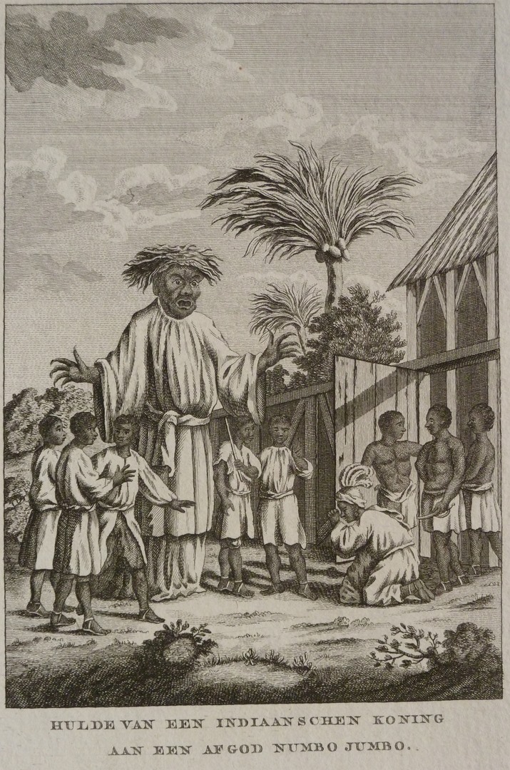 Geschiedenis godsdiensten W. Hurd (serie): Hulde van een Indiaanschen koning aan een afgod Numbo Jumbo
