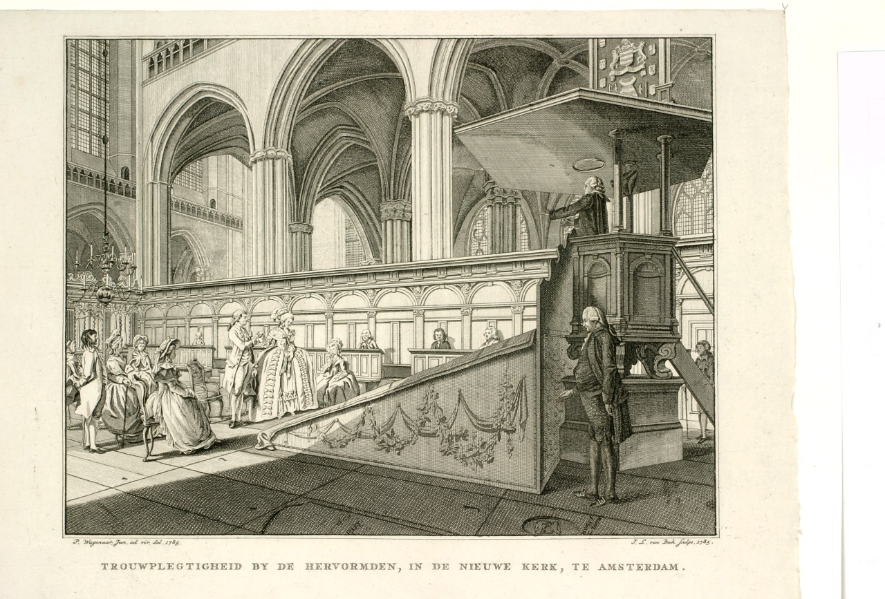 Geschiedenis godsdiensten W. Hurd (serie): Amsterdam, Nieuwe Kerk trouwplechtigheid hervormden