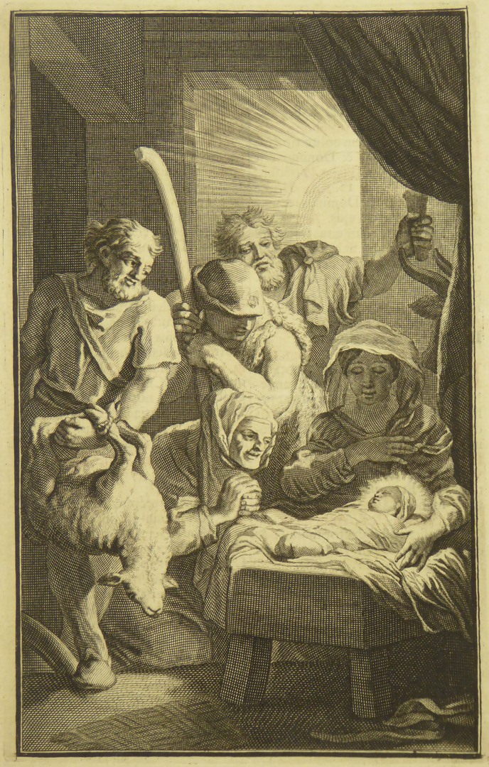 Aanbidding van de herders, prent uit bijbel