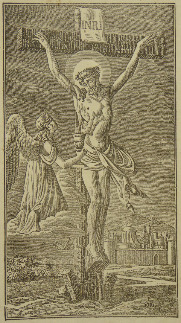 Engel ontvangt bloed van gekruisigde Christus