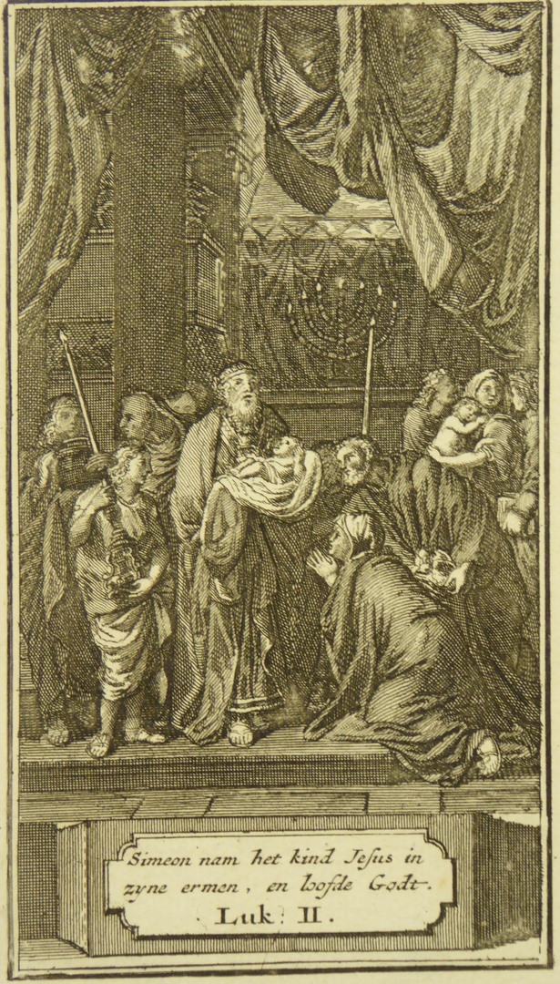 Simeon die in de tempel Jezus vasthoudt (Luc.2)