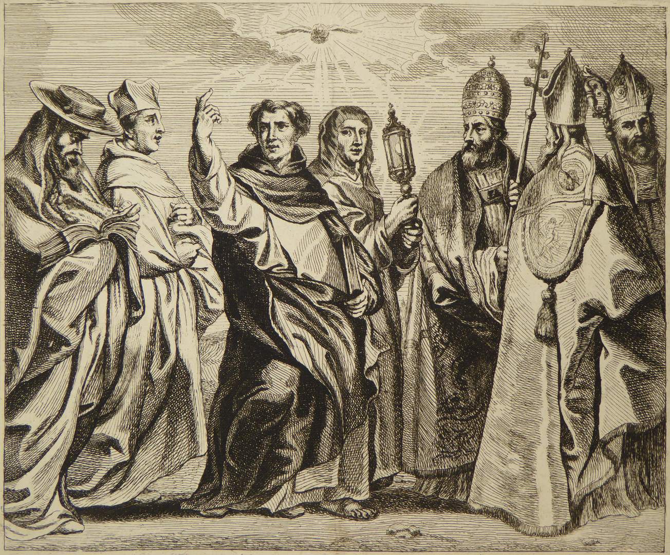 Thomas van Aquino met St. Clara en de vier kerkvaders