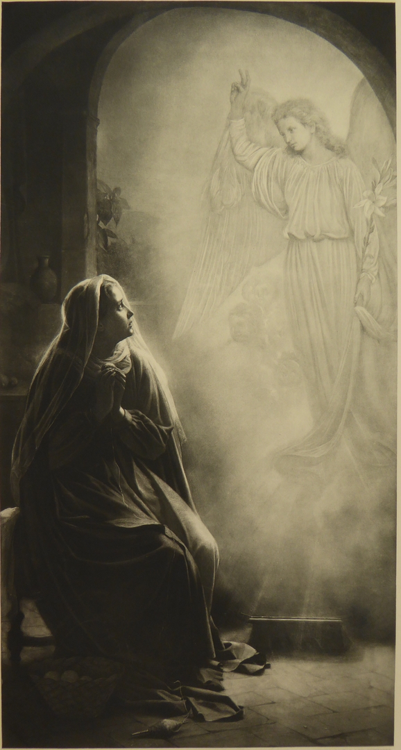 Annunciatie, Maria met engel (Luc.1:28-29)