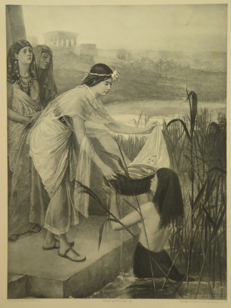 Bijbelplaat van zg. Julianabijbel: Mozes wordt gevonden (Ex.2:6)