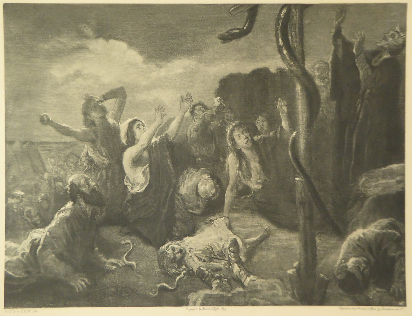 Bijbelplaat van zg. Julianabijbel: De bronzen slang (Num.21:8)