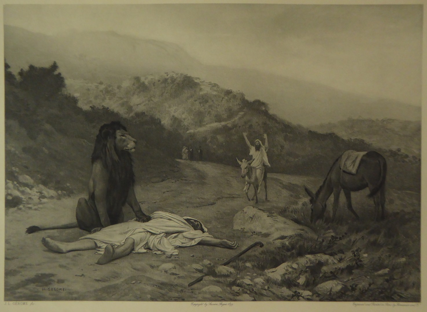 Bijbelplaat van zg. Julianabijbel: De ongehoorzame profeet (1 Kon.13:24)