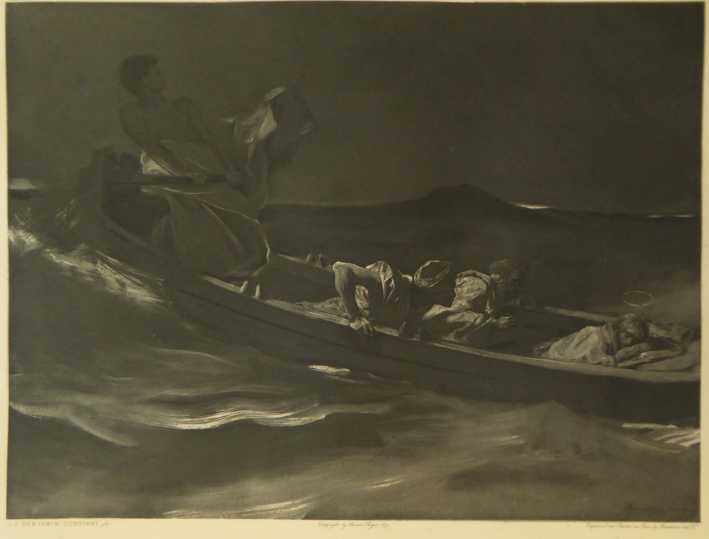 Bijbelplaat van zg. Julianabijbel: Jezus stilt de storm (Mar.4:38)