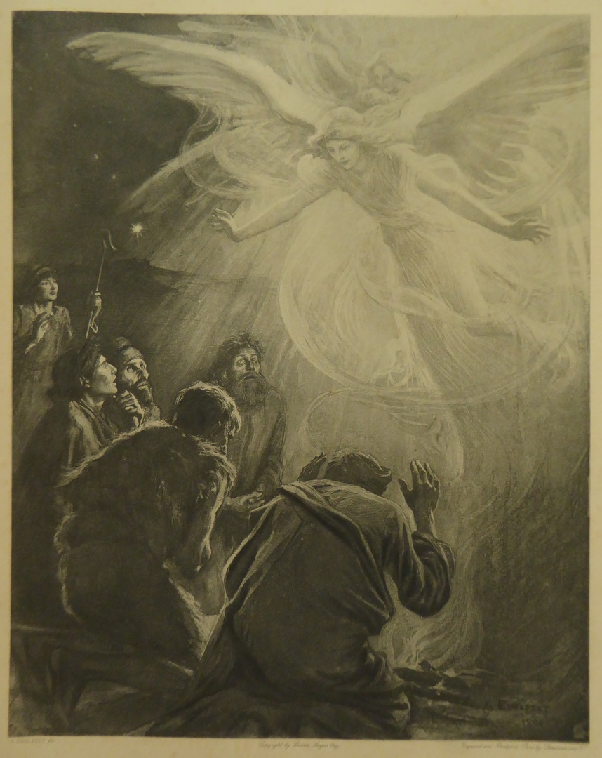 Bijbelplaat van zg. Julianabijbel: De engel bij de herders (Luc.2:10)