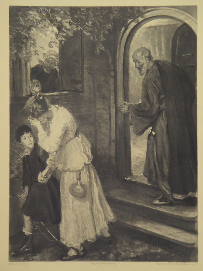 Bijbelplaat van zg. Julianabijbel: Hagar wordt weggestuurd (Gen.21:14)