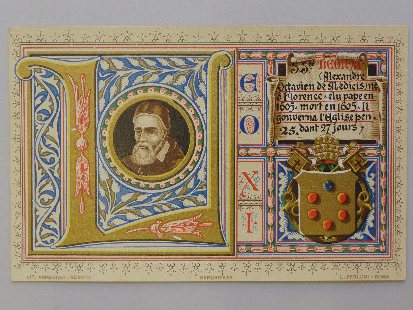 Serie prentbriefkaarten in mapje (3): paus Leo XI (1605-1605)