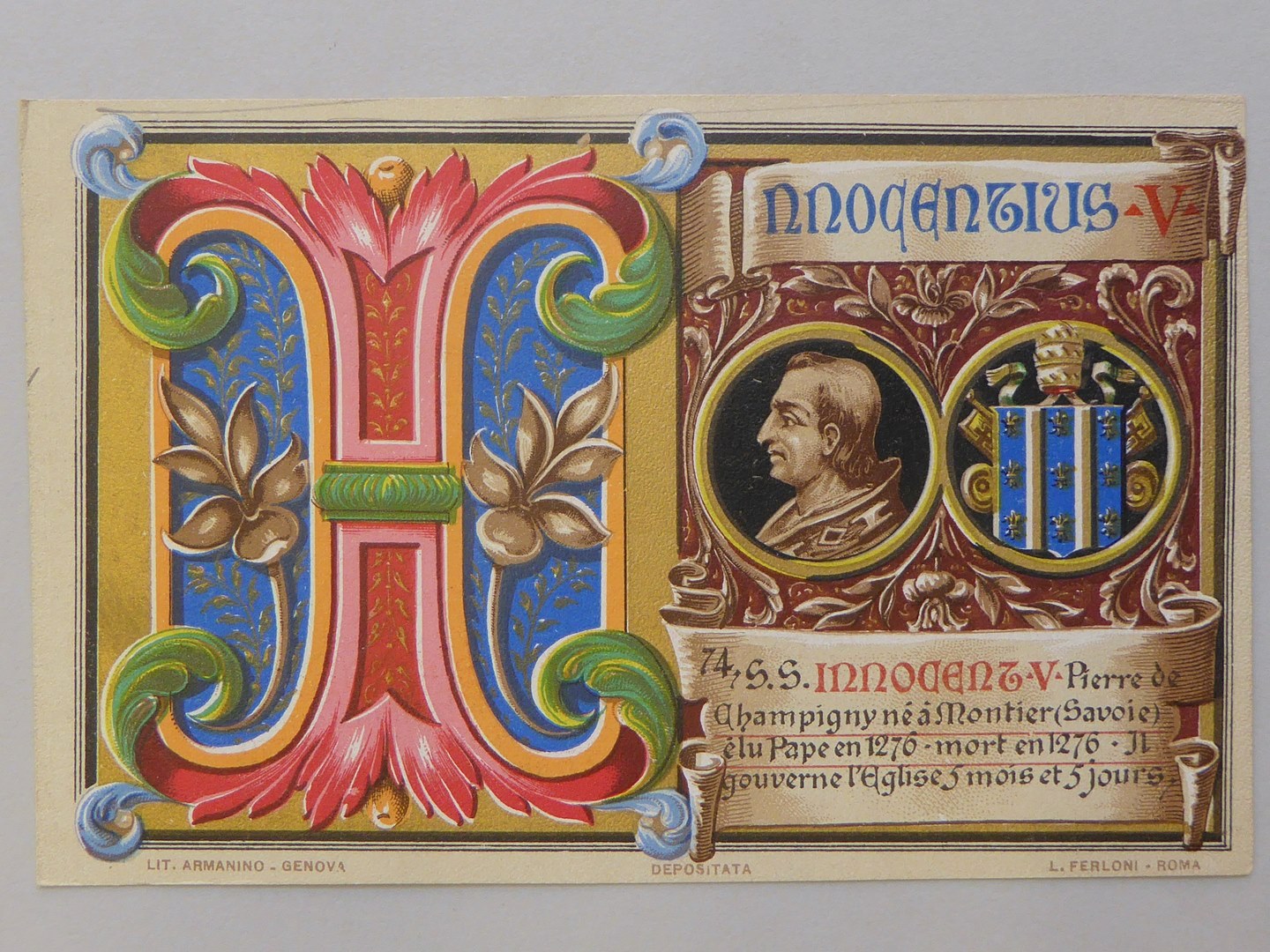 Serie prentbriefkaarten in mapje (VII): paus Innocentius V (1276-1276)