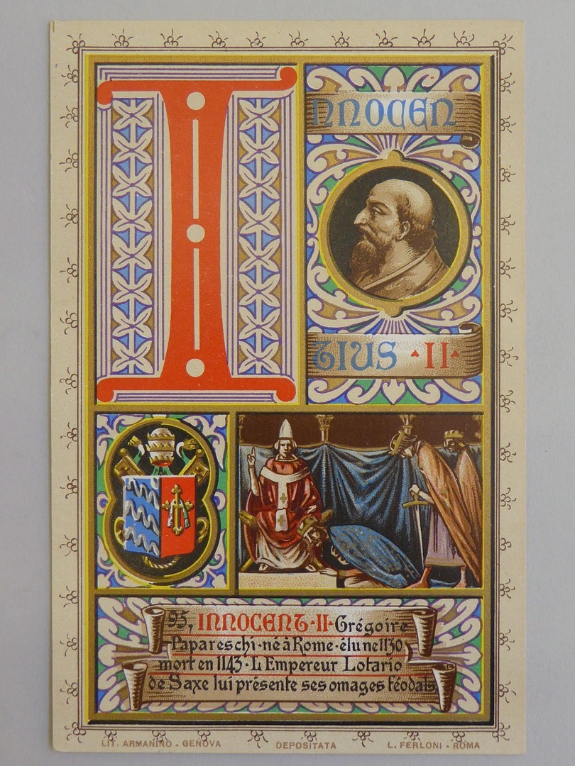 Serie prentbriefkaarten in mapje (VIII): paus Innocentius II (1130-1143)