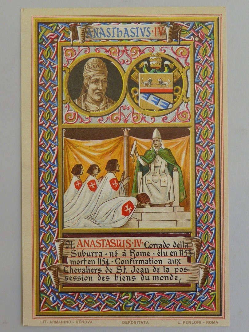 Serie prentbriefkaarten in mapje (VIII): paus Anastasius IV (1153-1154)