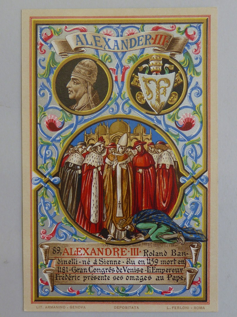 Serie prentbriefkaarten in mapje (VIII): paus Alexander III (1159-1181)