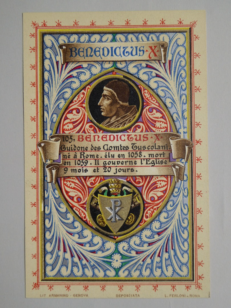 Serie prentbriefkaarten in mapje (IX): tegenpaus Benedictus X (1058-1059)