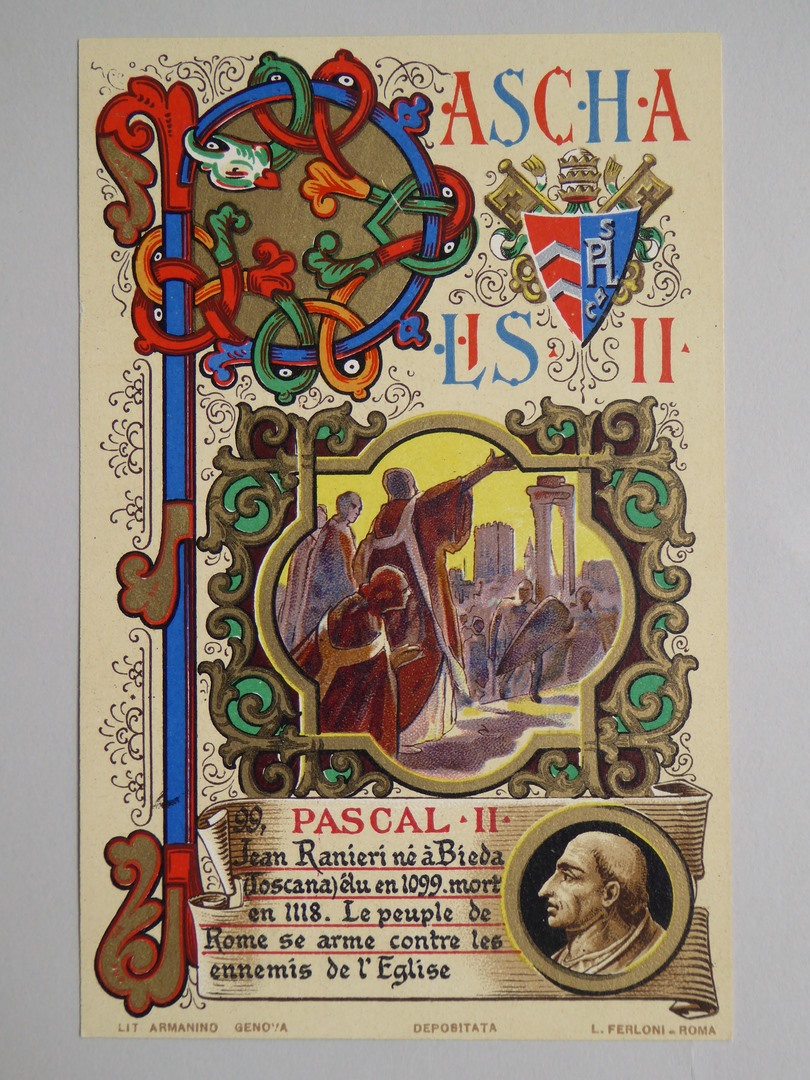 Serie prentbriefkaarten in mapje (IX): paus Paschalis II (1099-1118)