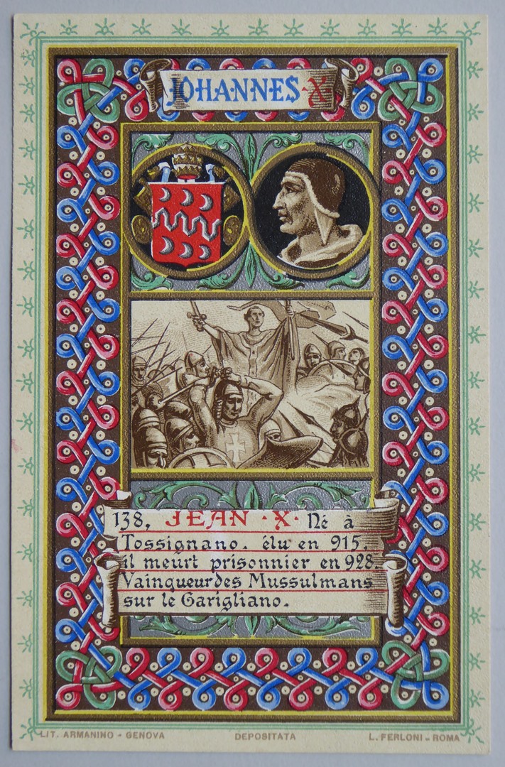 Serie prentbriefkaarten in mapje (XII): paus Johannes X (915-928)