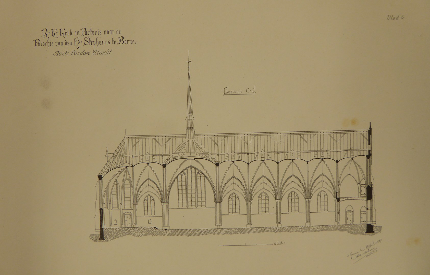 Borne, R.K. kerk en pastorie voor de parochie van den H. Stephanus, doorsnede