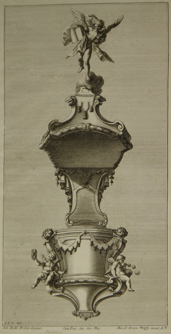 Model van een preekstoel, in roccocostijl, serie van zes prenten