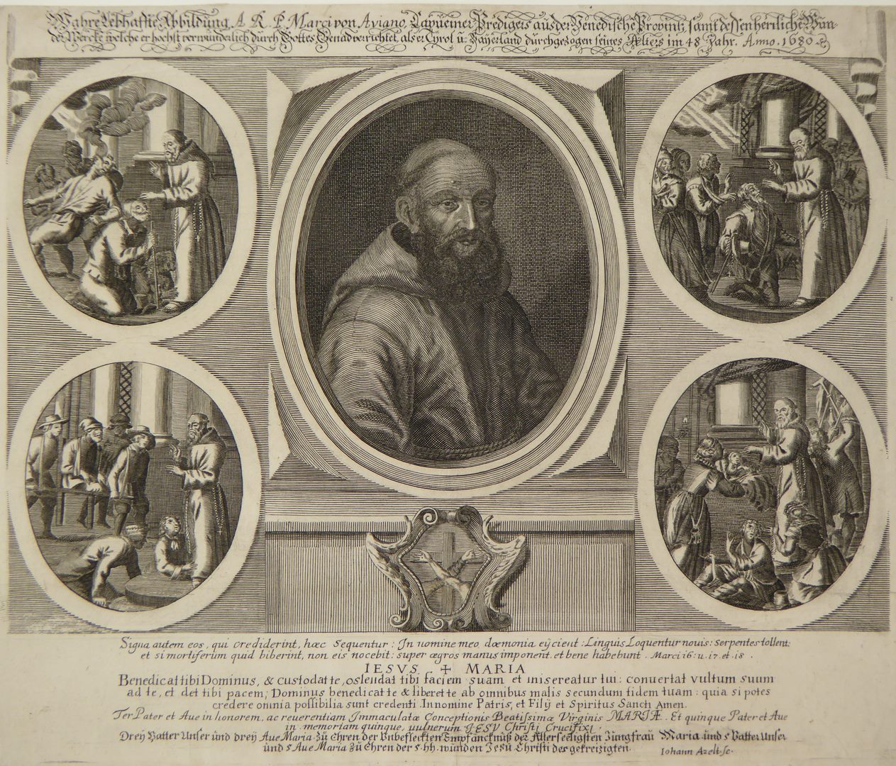 Portret van Marcus van Avianus, met vier scènes uit zijn leven