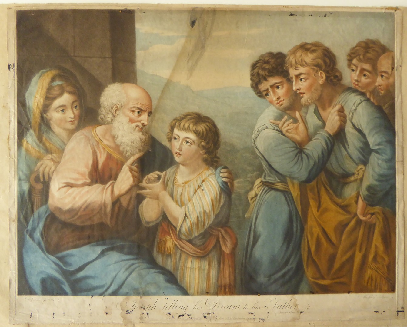 Josef vertelt zijn droom aan zijn vader, gekleurd