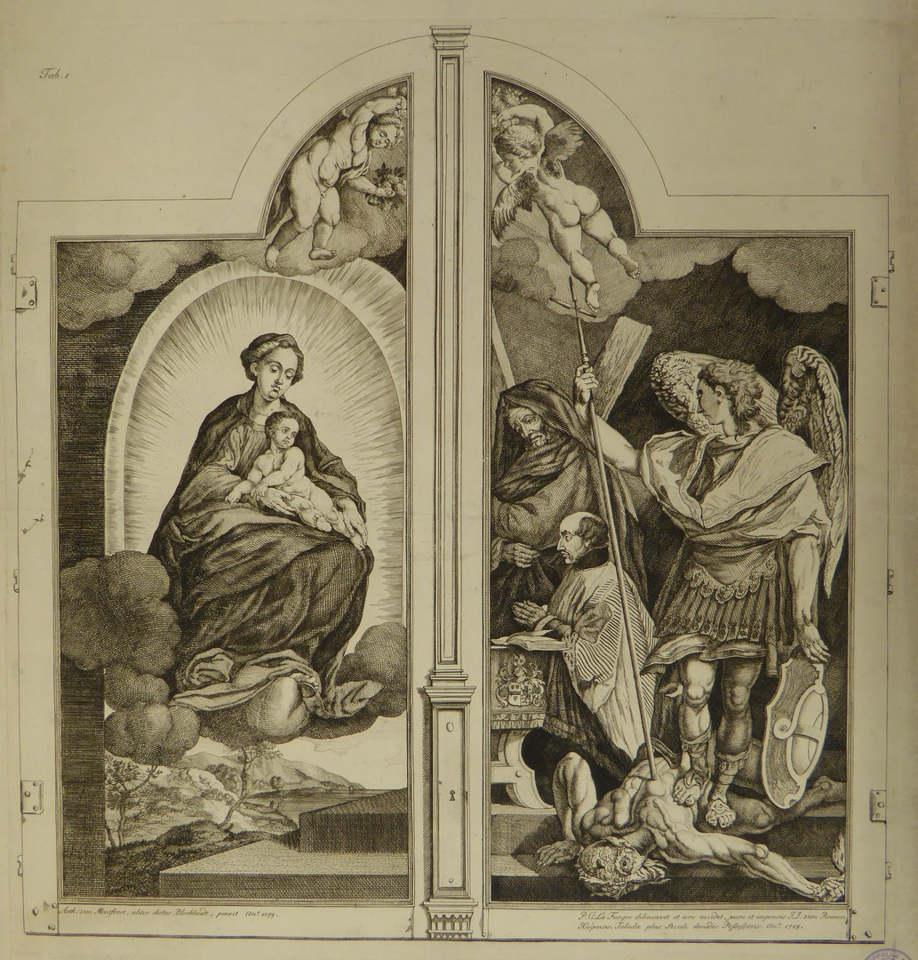 Vleugeldeur van triptiek met O.L. Vrouwe op de wolken, schenker met Michael, Andreas