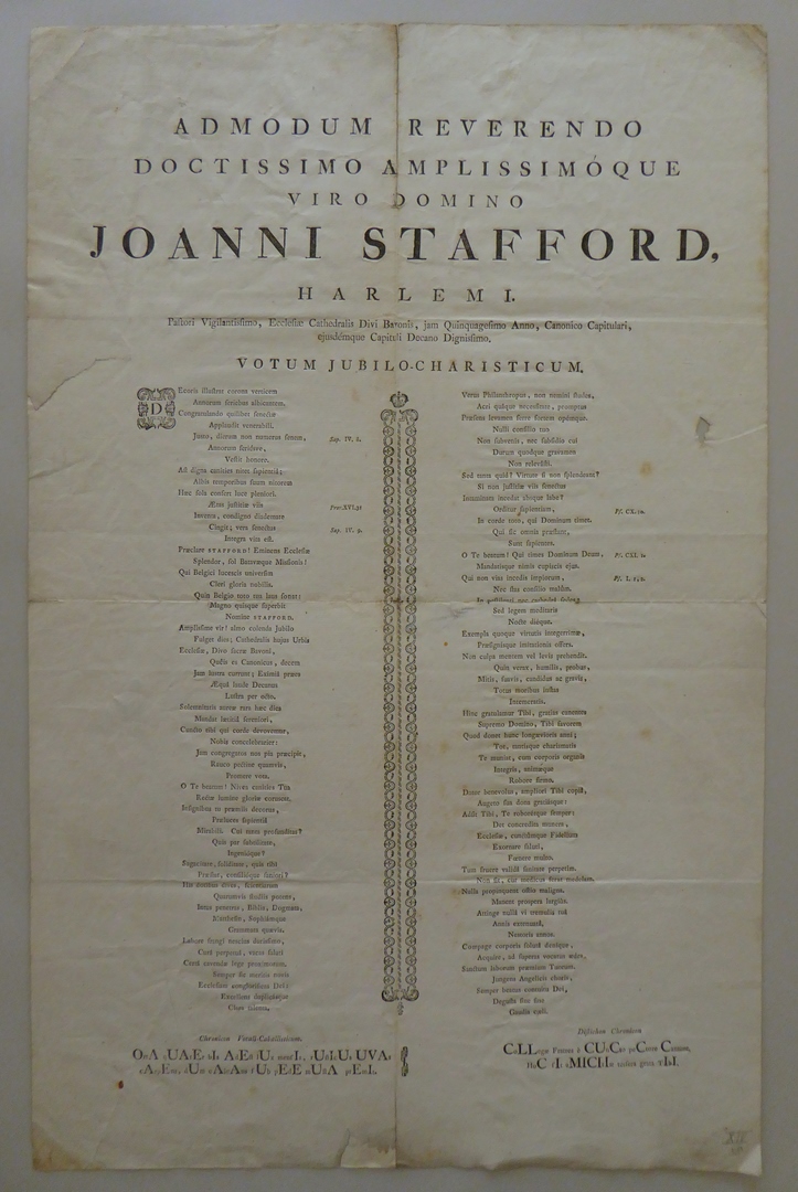 Latijns gedicht op het 50-jarig kanunnikschap van Joannes Stafford, pastoor Begijnhof Haarlem