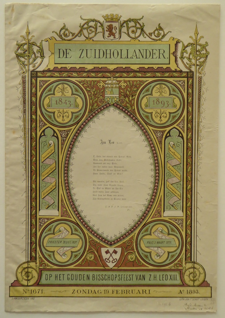 Feestnummer van De Zuidhollander, ter ere van het gouden bisschopsfeest van Z.H. Leo XIII, zondag 19 Februari 1893