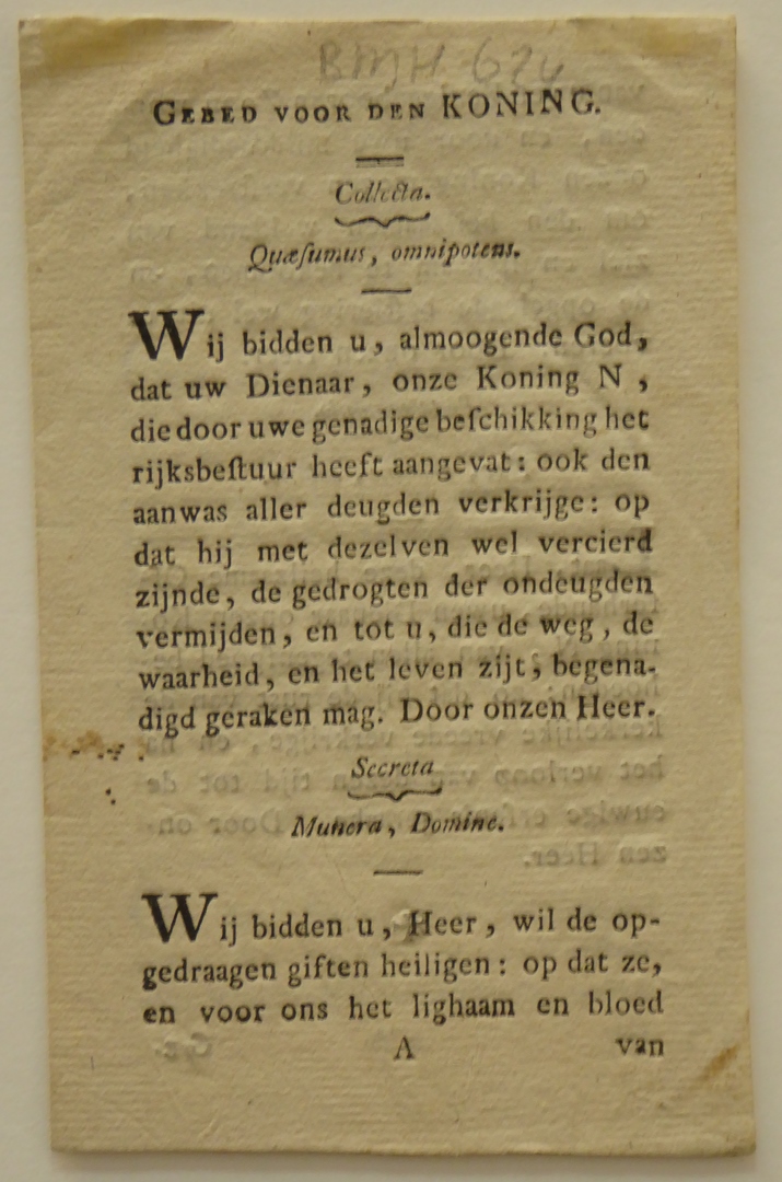 Aankondiging gebedswijziging in 1806 aan de koning met voorbeeld