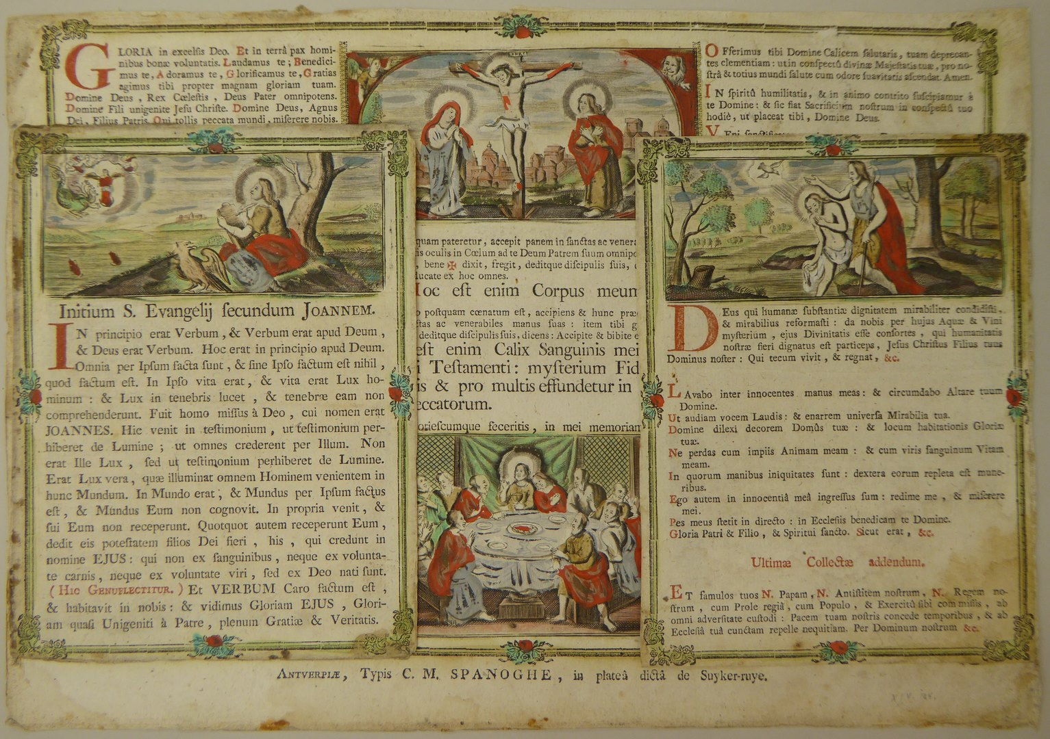 Stel canonborden met Johannes op Pathmos, kruisiging, laatste avondmaal, doop van Christus